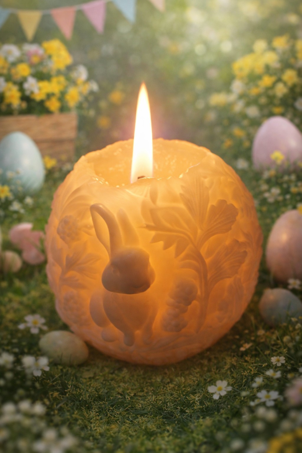 Une fois allumée, la lumière de la flamme révèle toute la finesse des détails et crée une atmosphère chaleureuse et apaisante, parfaite pour une décoration de Pâques pleine de douceur.
