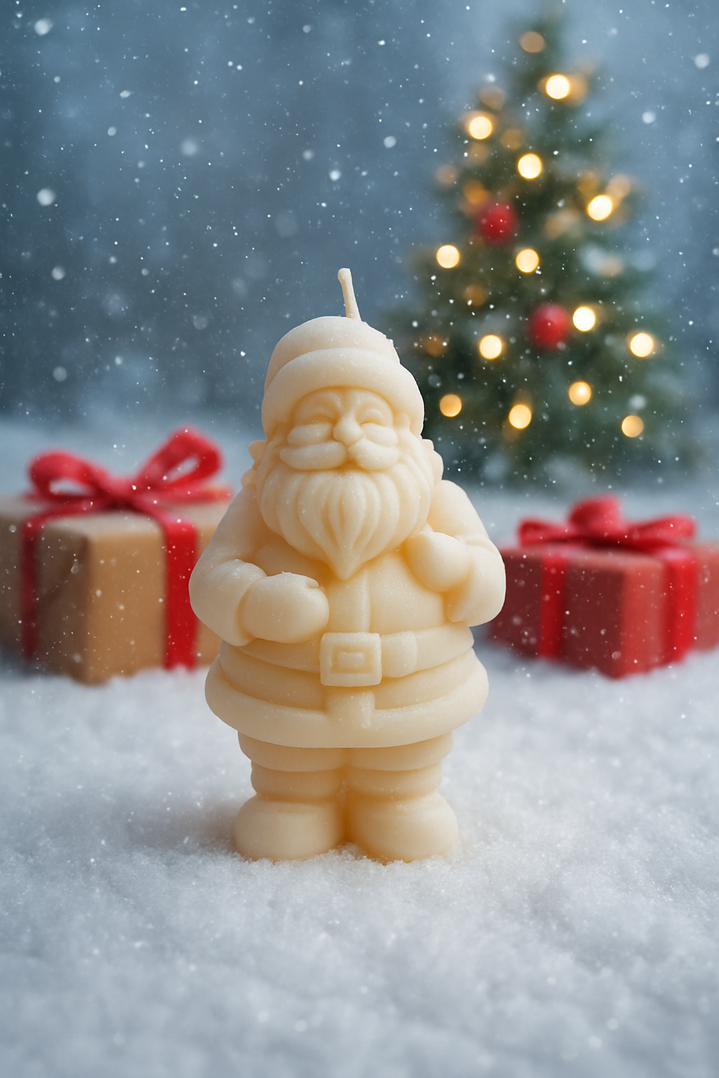 Apportez la chaleur et la douceur de Noël dans votre intérieur avec cette bougie artisanale en forme de Père Noël.