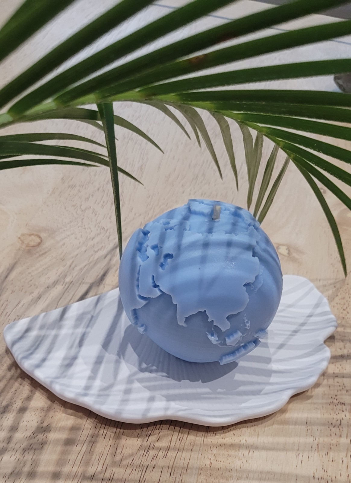 Cette magnifique bougie représentant notre planète Terre incarne la beauté et la pureté.